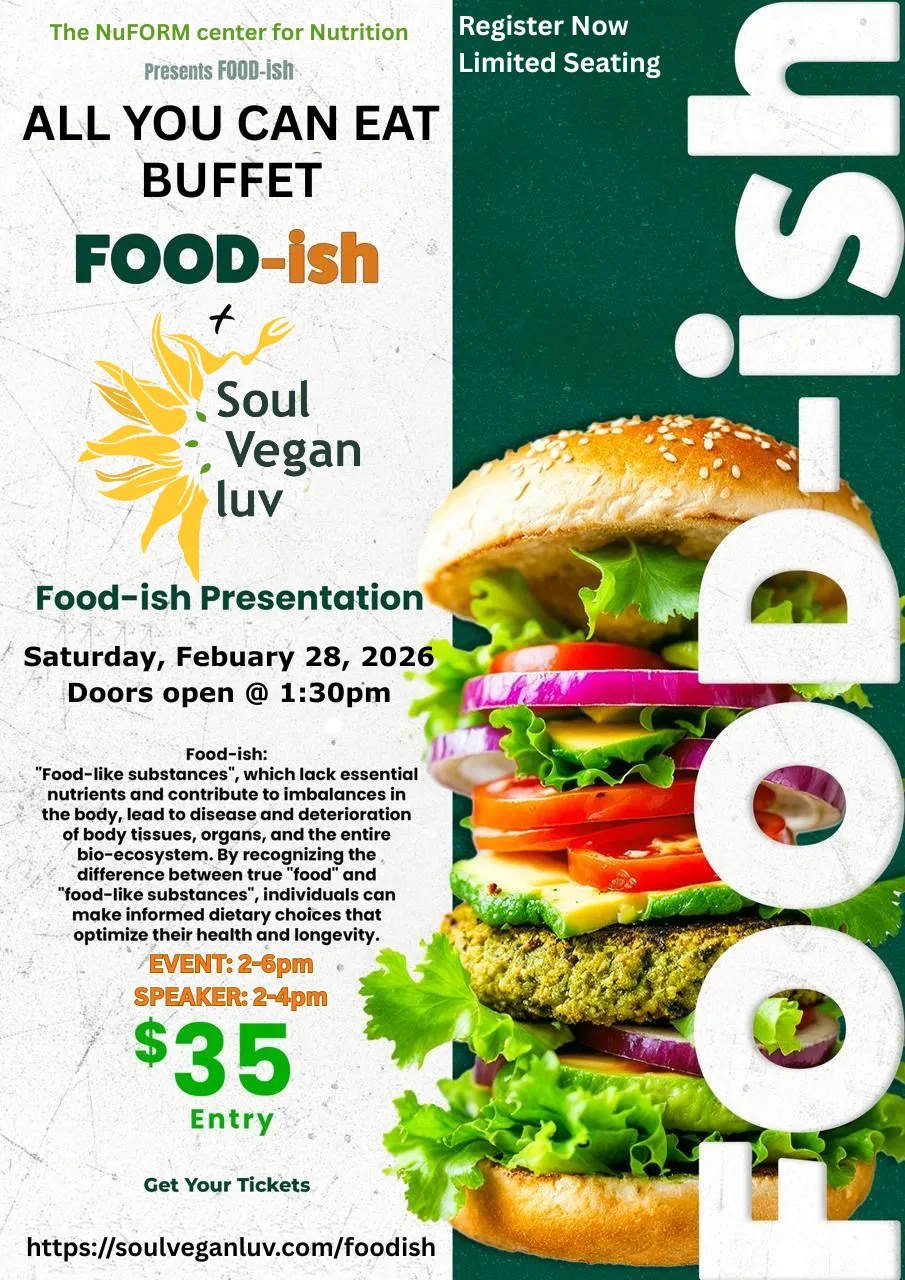 Join Soul Vegan for a practical presentation on distinguishing true food from food-like substances and making choices that support long-term health.